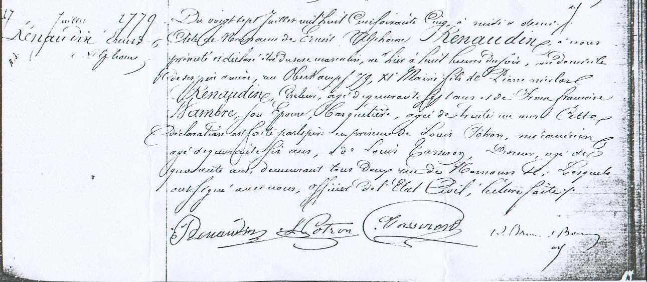 Avant d'entreprendre une recherche sur un métier inconnu, il est indispensable d'avoir un scan de l'original. En effet, il n'est pas toujours facile avec une écriture ancienne de déchiffrer le nom d'un métier disparu sur un acte original. |